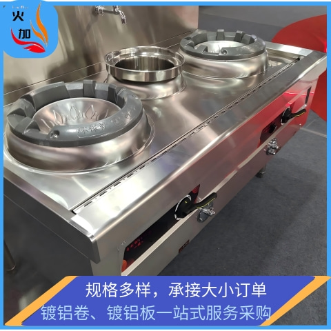 工艺:基材冷轧开卷→清洗脱脂→热浸镀铝硅合金→气刀控制镀层厚度→冷却→钝化 / 涂油→剪切 / 冲压 / 折弯→焊接组装→质检出厂。核心是热浸镀工艺,确保镀层均匀、附着力强,耐受炉具长期高温。